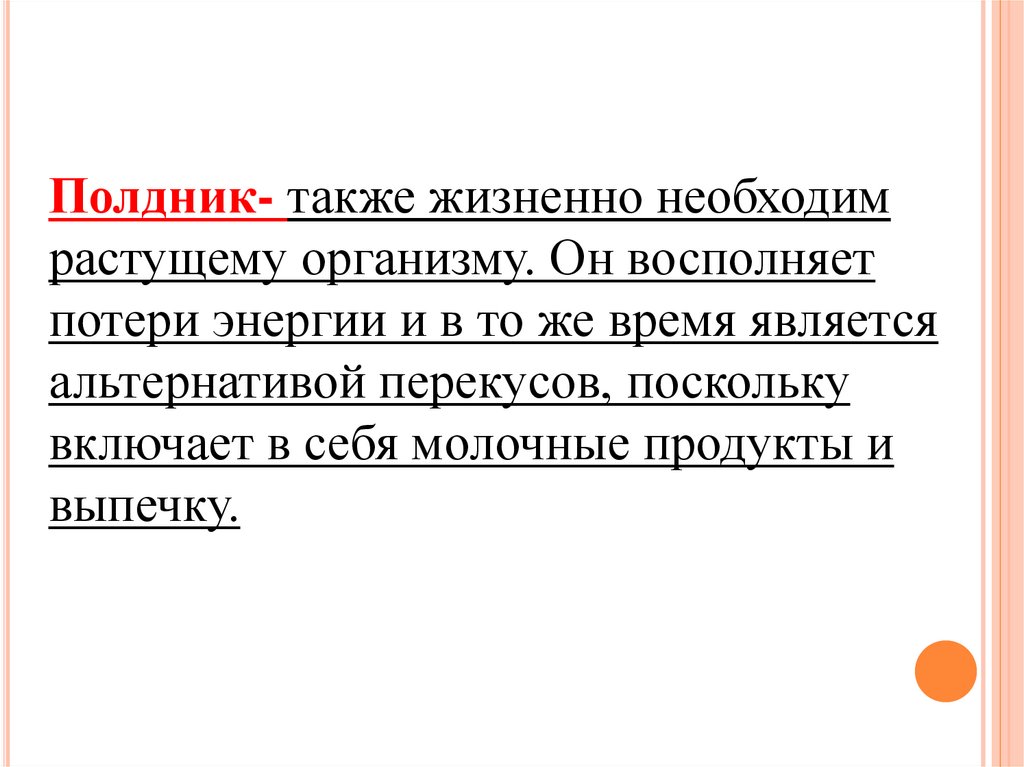 Полдник- также жизненно необходимрастущему организму. Он восполняет