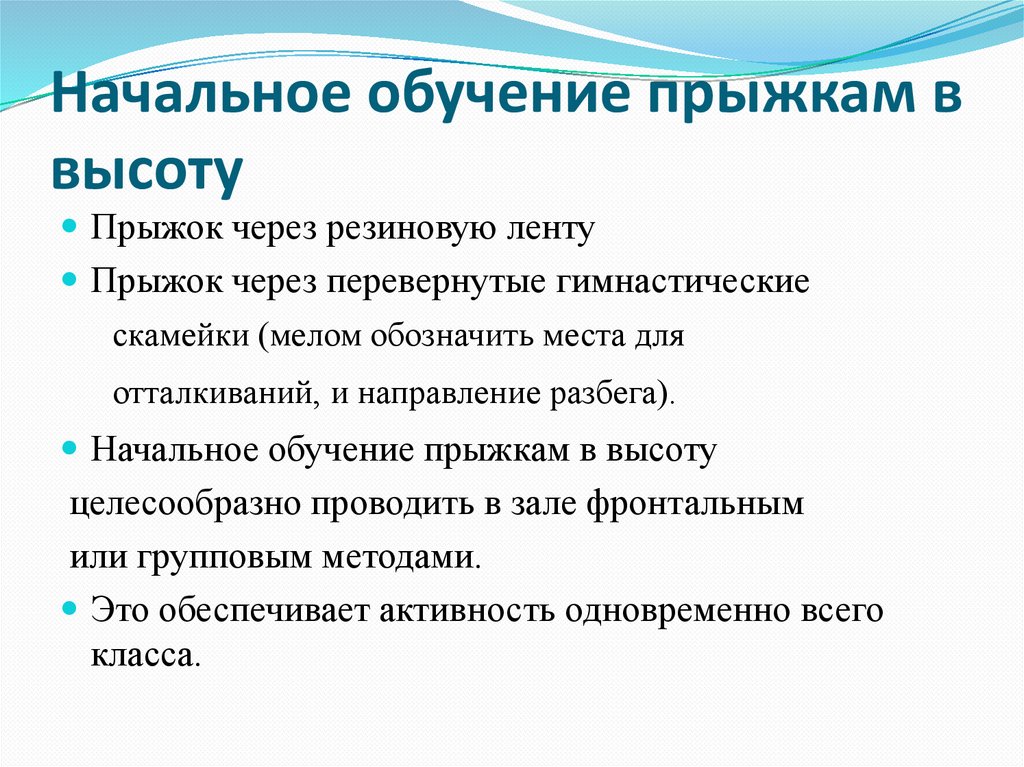 Начальное обучение прыжкам ввысоту