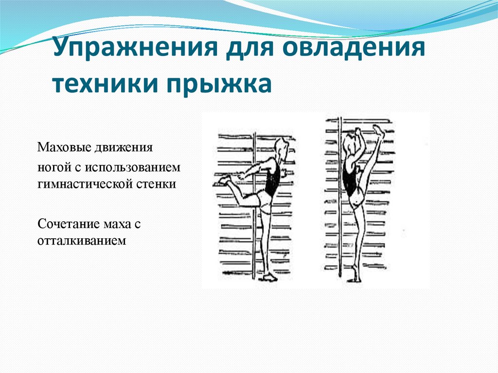 Упражнения для овладениятехники прыжка
