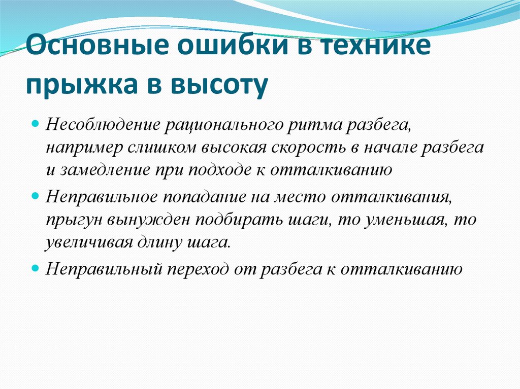 Основные ошибки в техникепрыжка в высоту