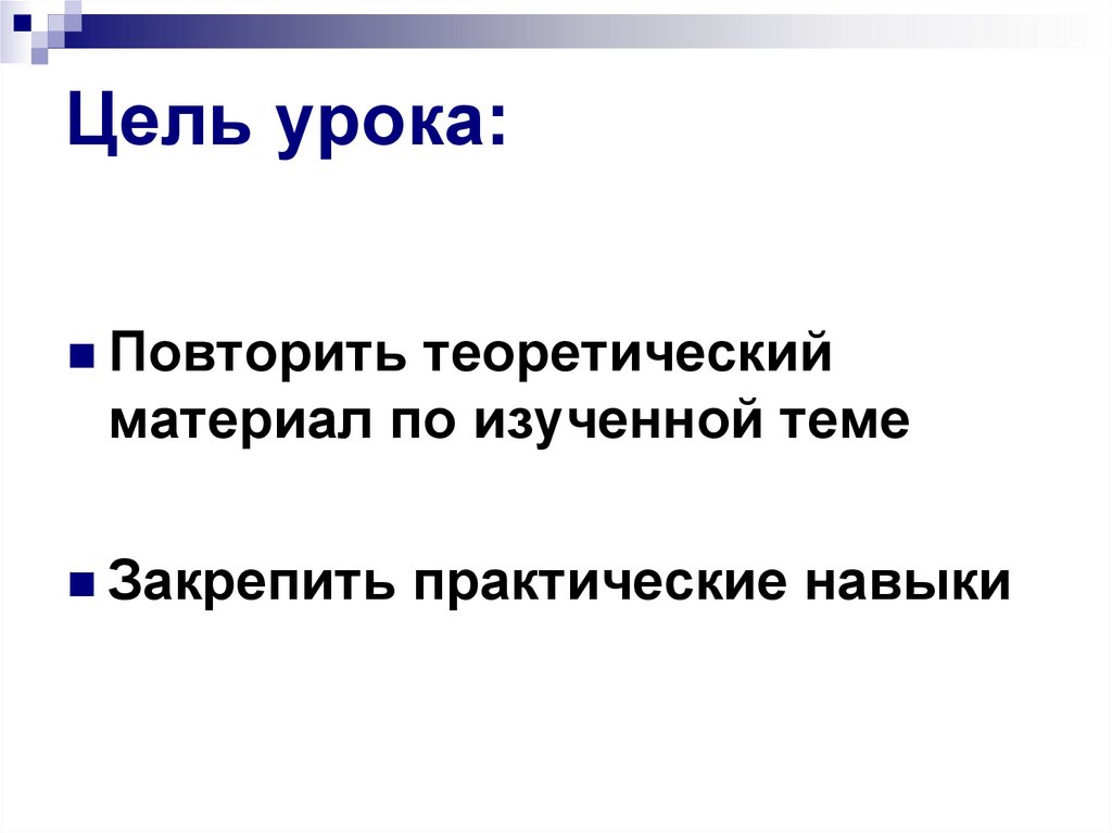 Цель урока:Повторить