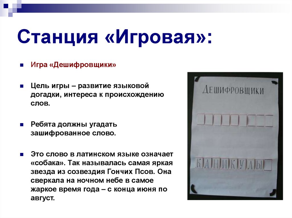 Станция «Игровая»:Игра «Дешифровщики»