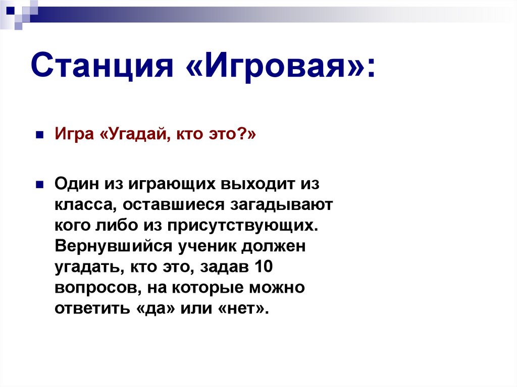 Станция «Игровая»:Игра «Угадай, кто это?»