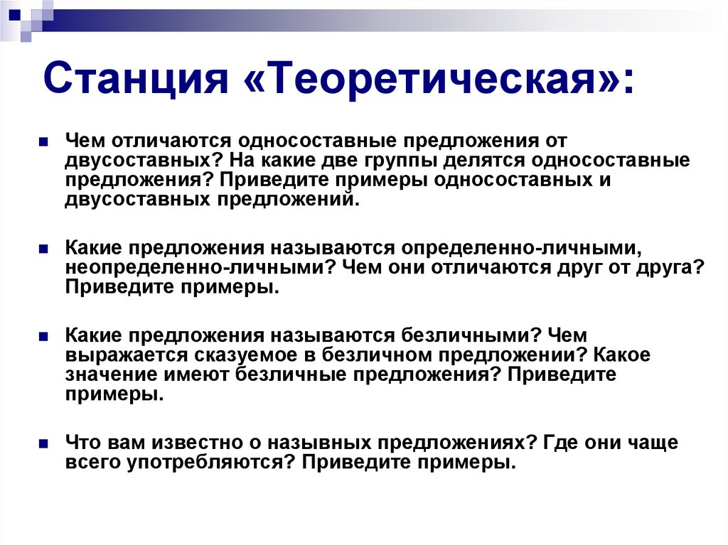 Станция «Теоретическая»:Чем отличаются односоставные предложения от