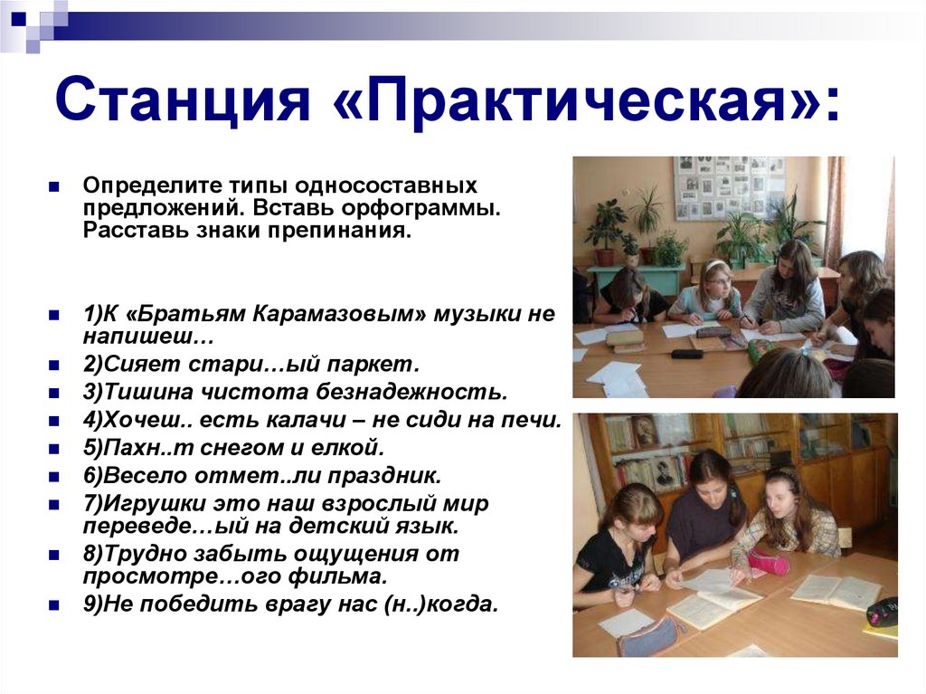 Станция «Практическая»:Определите типы односоставных