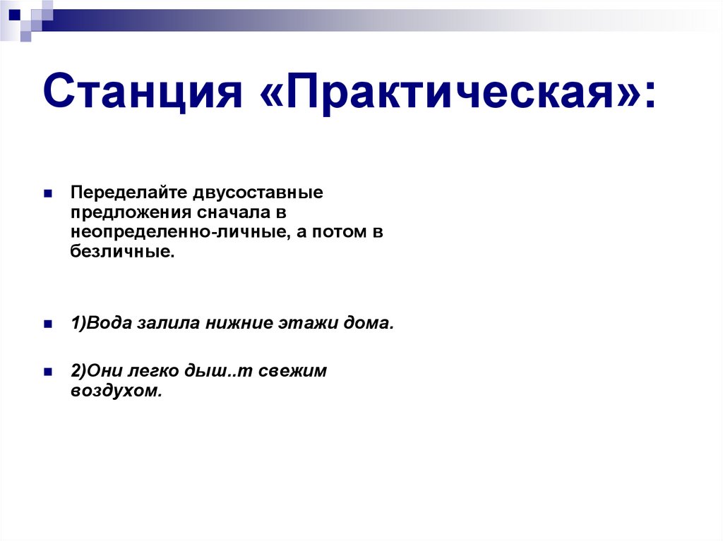 Станция «Практическая»:Переделайте двусоставные