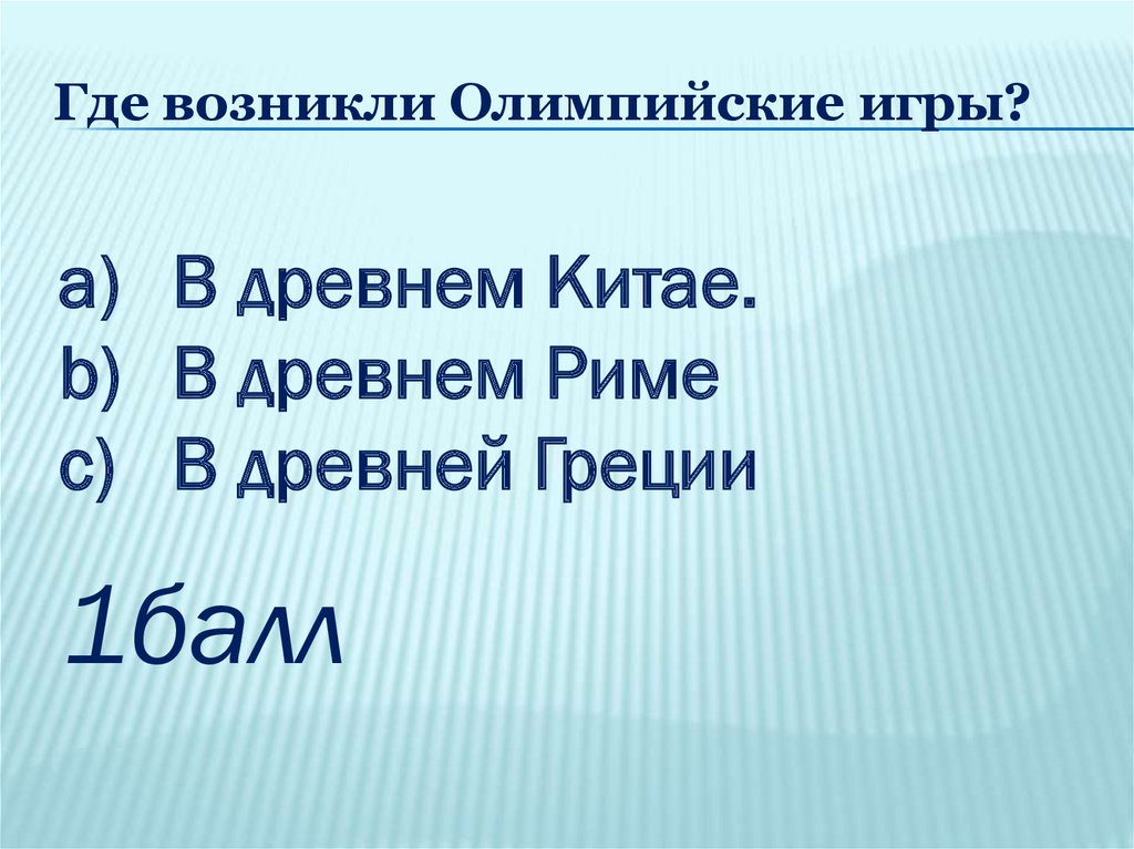 Где возникли Олимпийские игры?a) В древнем Китае.