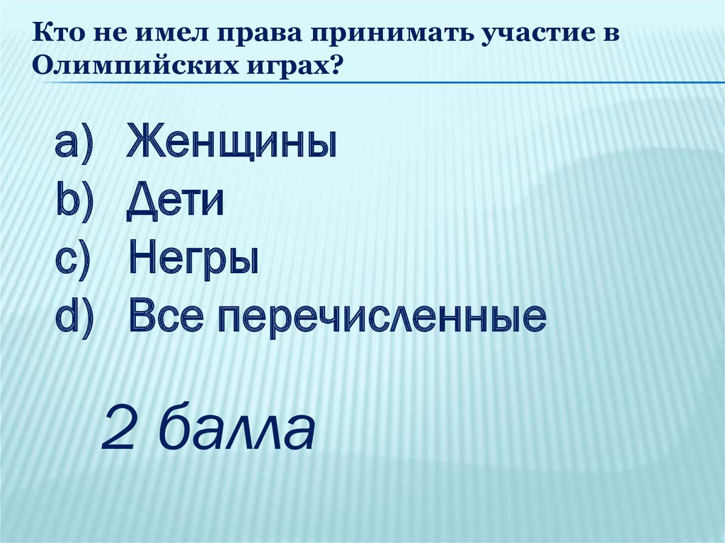 Кто не имел права принимать участие вОлимпийских играх?
