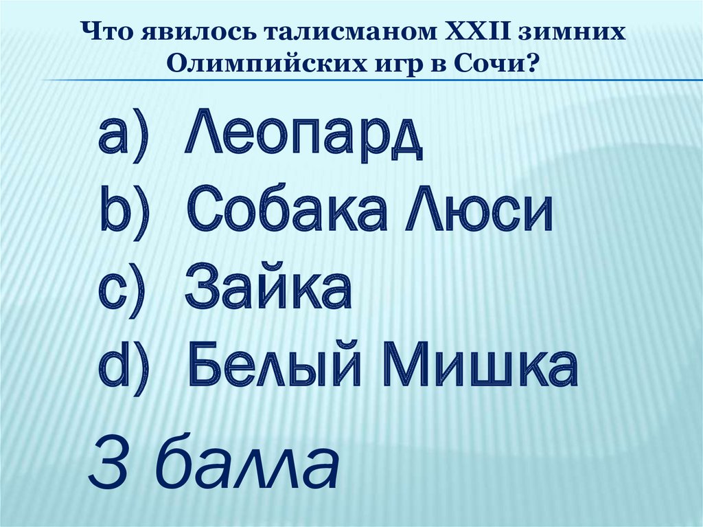 Что явилось талисманом XXII зимнихОлимпийских игр в Сочи?