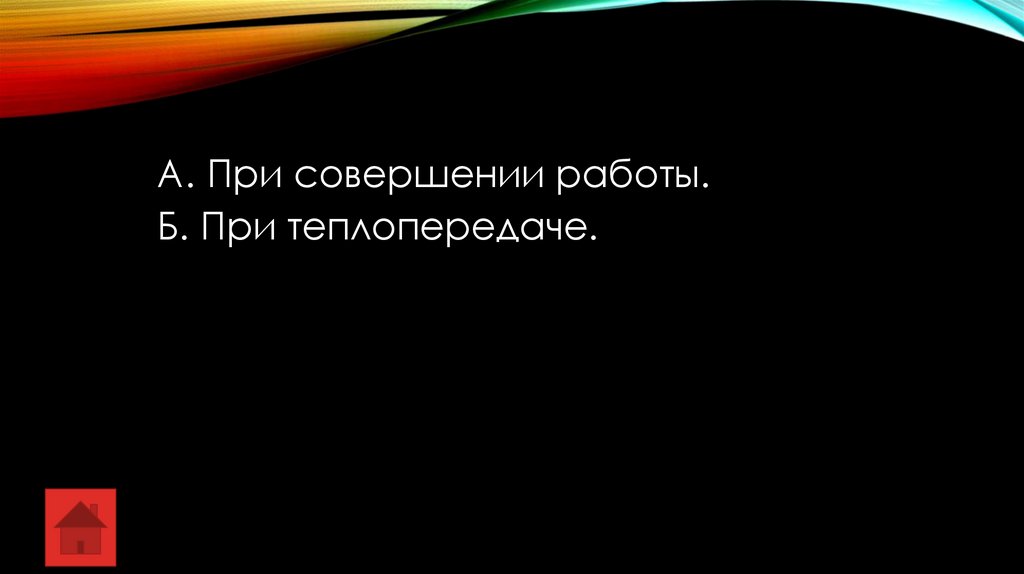 А. При совершении работы.Б. При теплопередаче.