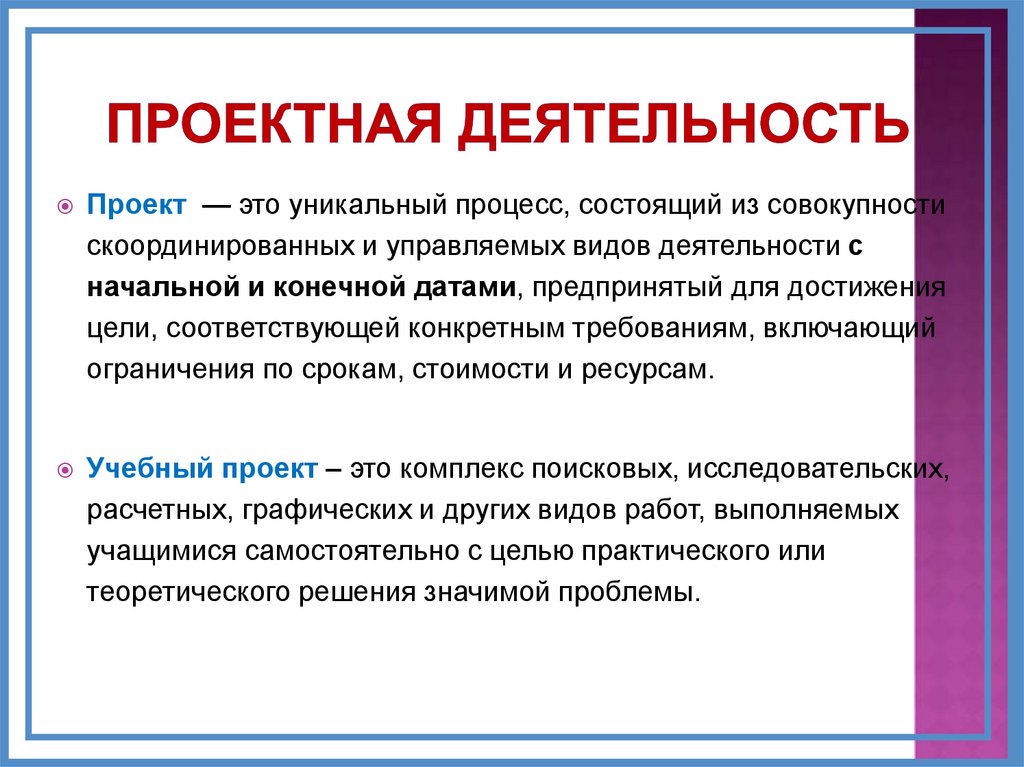 Проект — это уникальный процесс, состоящий из совокупностискоординированных и управляемых видов деятельности с