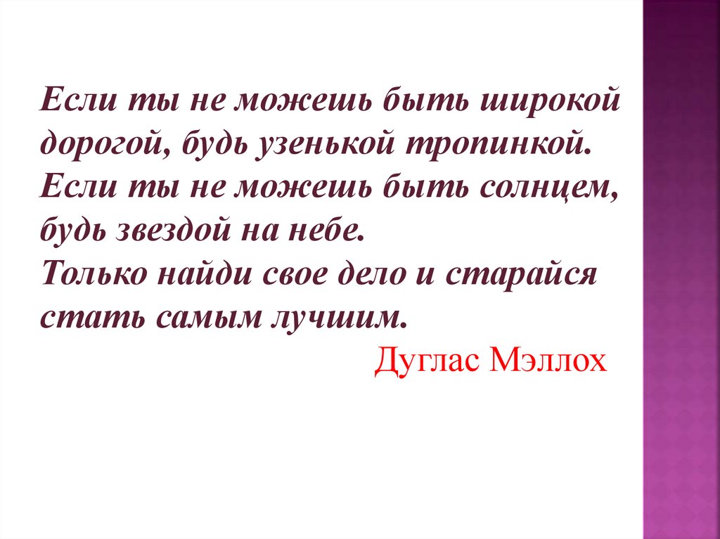 Если ты не можешь быть широкойдорогой, будь узенькой тропинкой.