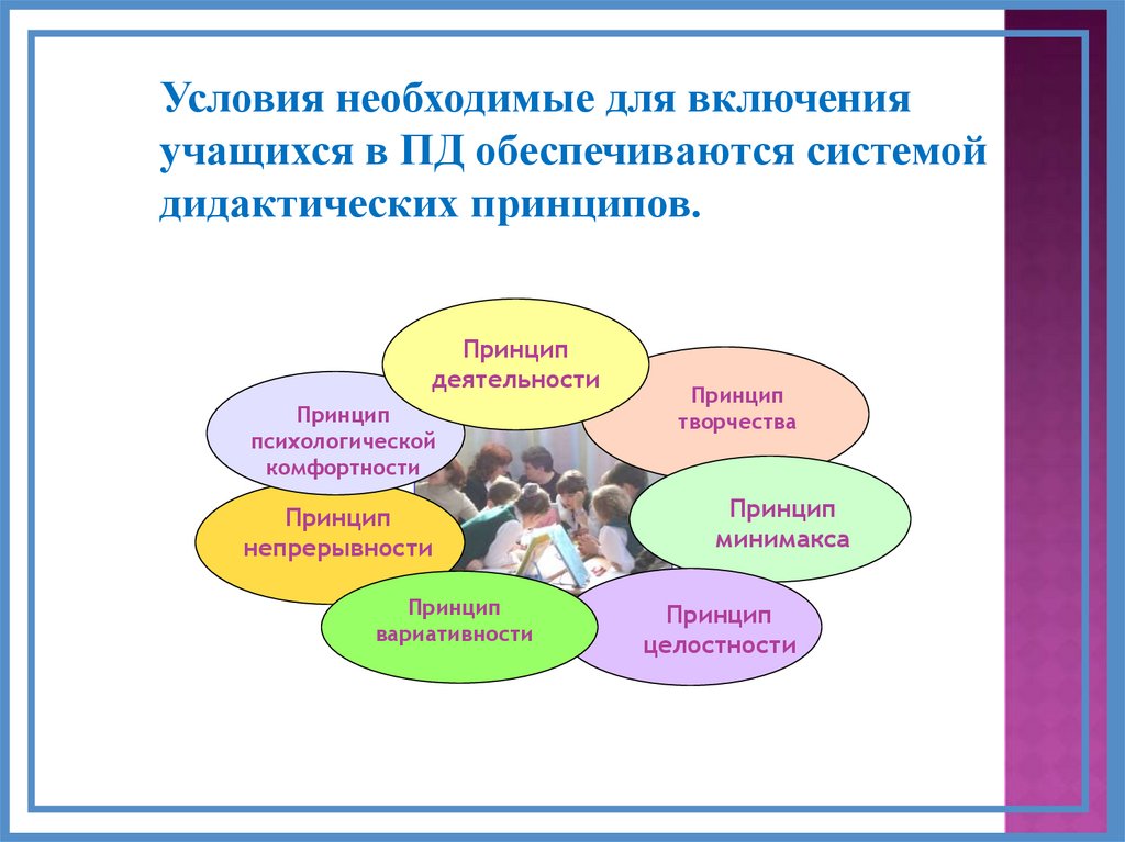 Условия необходимые для включенияучащихся в ПД обеспечиваются системой