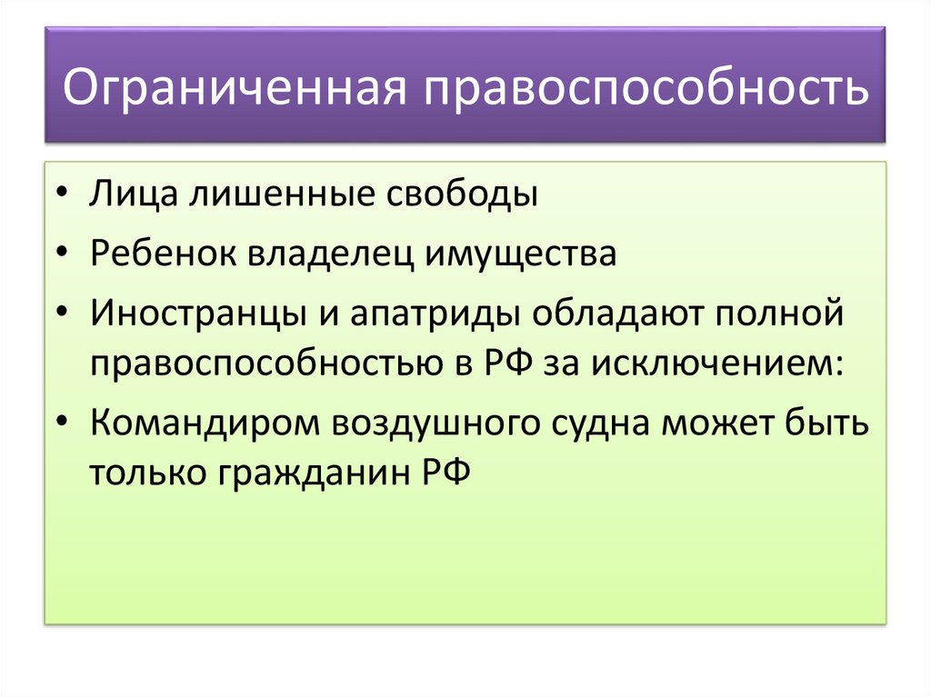 правоспособностью в РФ за исключением: