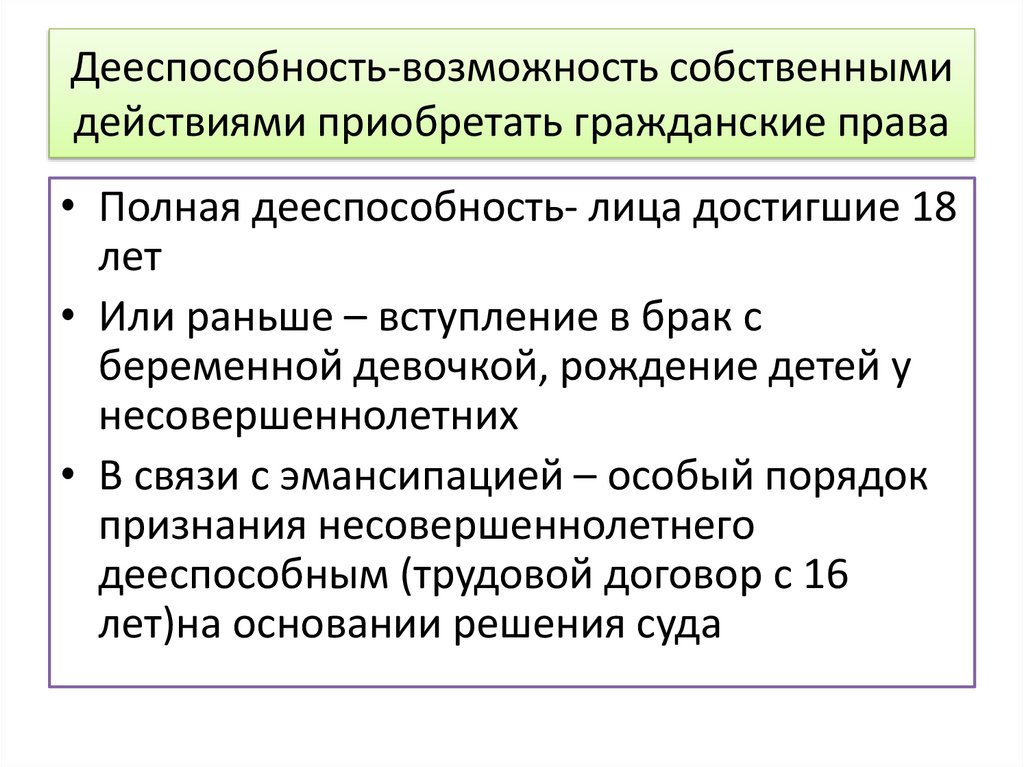 • Полная дееспособность- лица достигшие 18