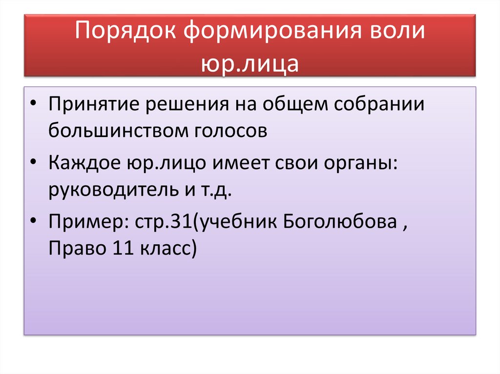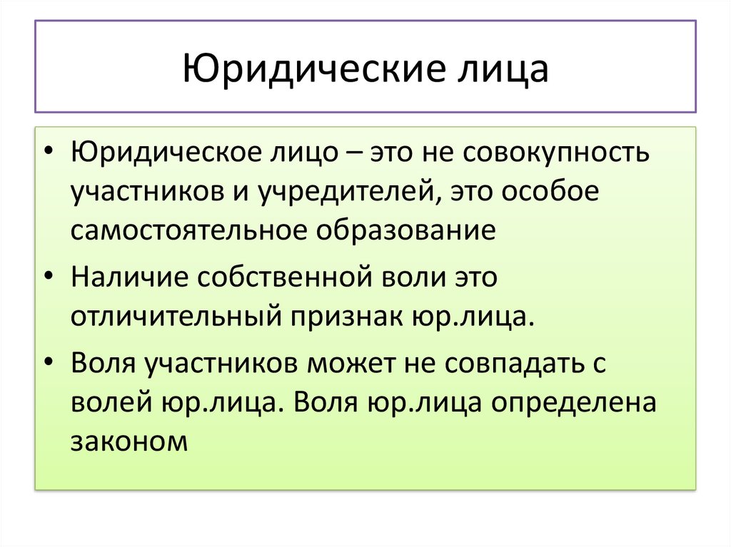 волей юр.лица. Воля юр.лица определена