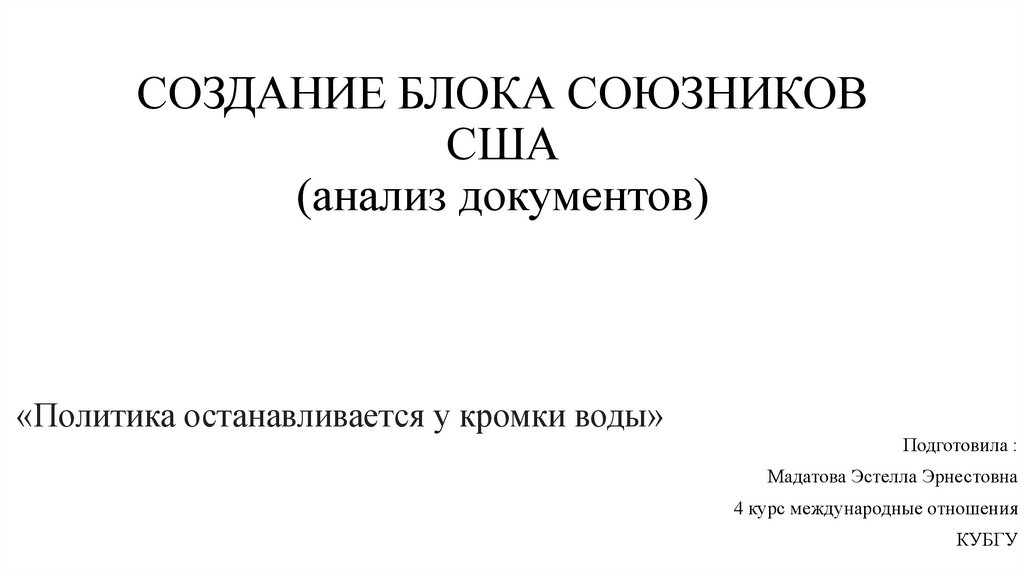 СОЗДАНИЕ БЛОКА СОЮЗНИКОВСША