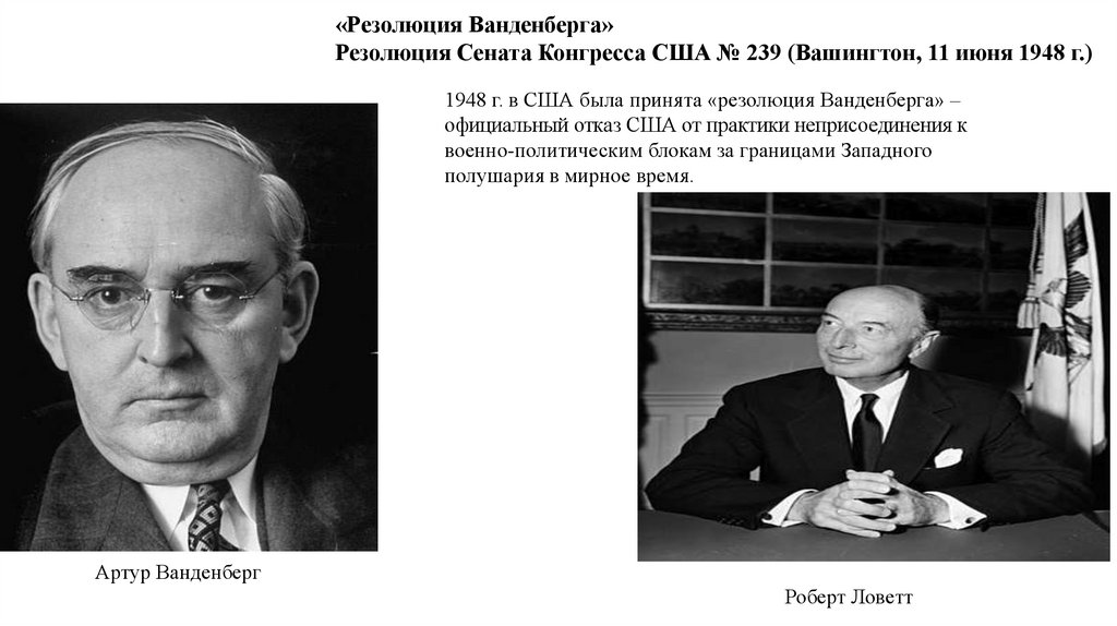 «Резолюция Ванденберга»Резолюция Сената Конгресса США № 239 (Вашингтон, 11 июня 1948 г.)