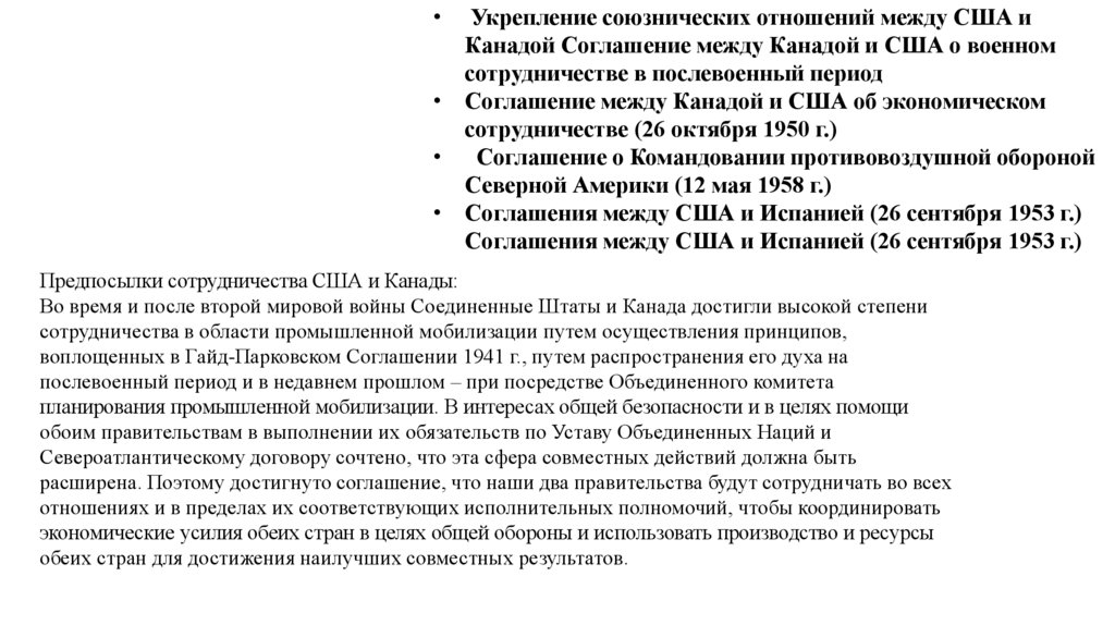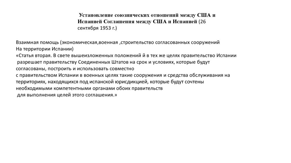 Установление союзнических отношений между США иИспанией Соглашения между США и Испанией (26