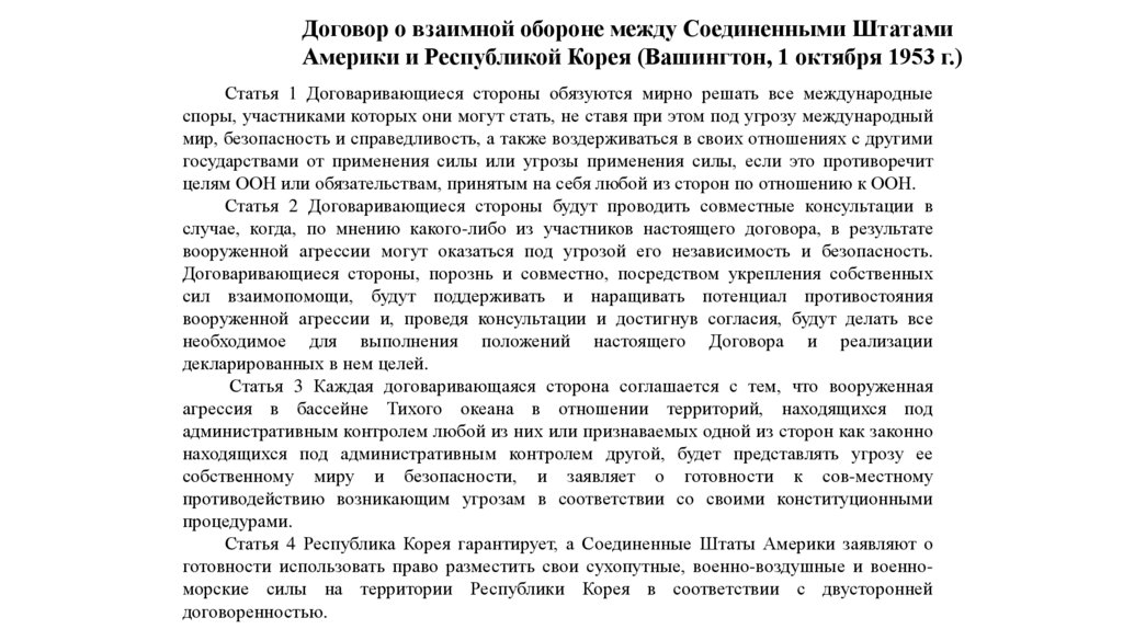 Договор о взаимной обороне между Соединенными ШтатамиАмерики и Республикой Корея (Вашингтон, 1 октября 1953 г.)