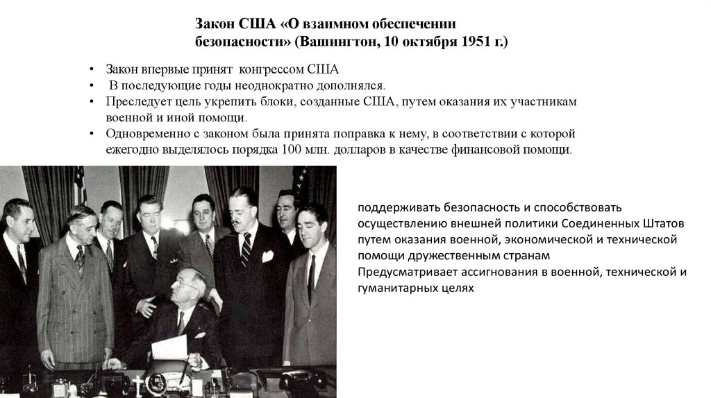Закон США «О взаимном обеспечениибезопасности» (Вашингтон, 10 октября 1951 г.)