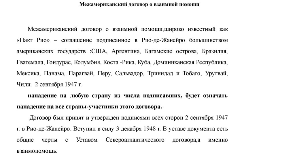 Межамериканский договор о взаимной помощиМежамериканский договор о взаимной помощи,широко известный как