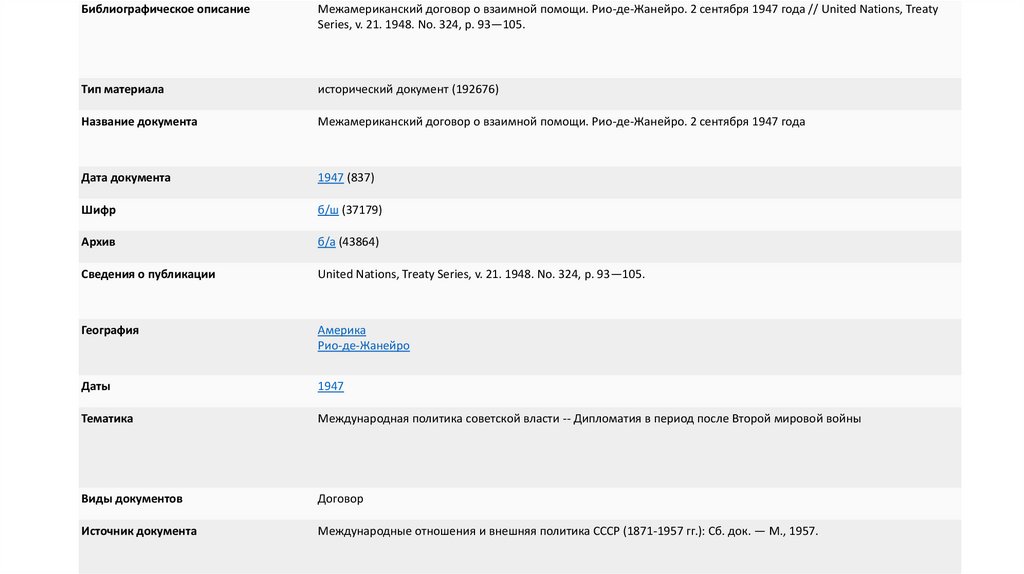 Библиографическое описаниеМежамериканский договор о взаимной помощи. Рио-де-Жанейро. 2 сентября 1947 года // United Nations, Treaty
