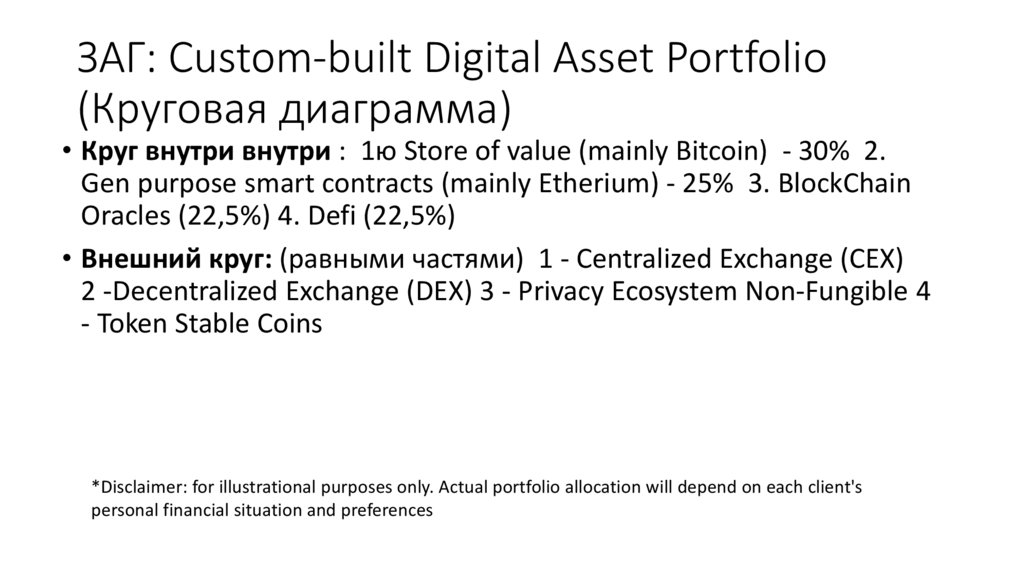 • Круг внутри внутри : 1ю Store of value (mainly Bitcoin) - 30% 2.