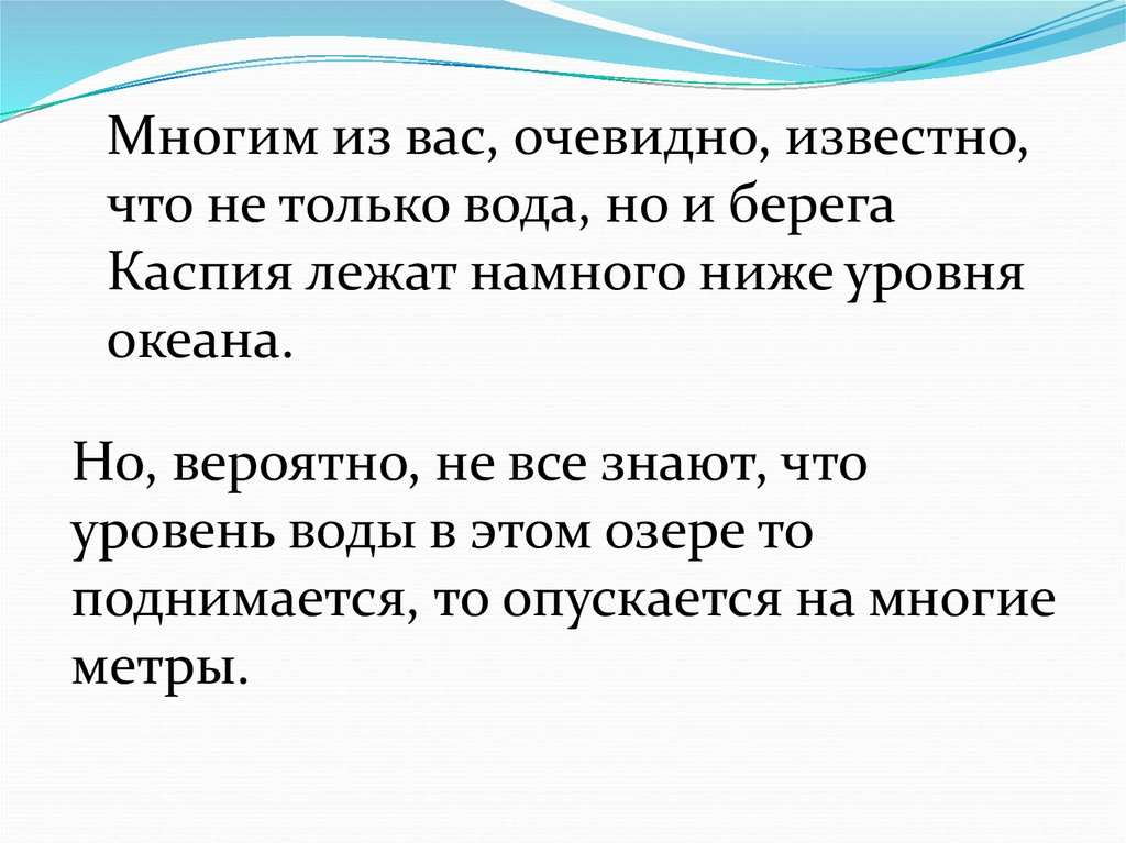 Каспия лежат намного ниже уровня