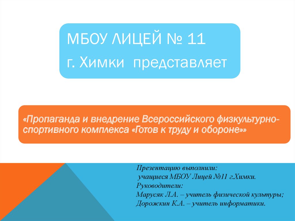 МБОУ ЛИЦЕЙ № 11г. Химки представляет