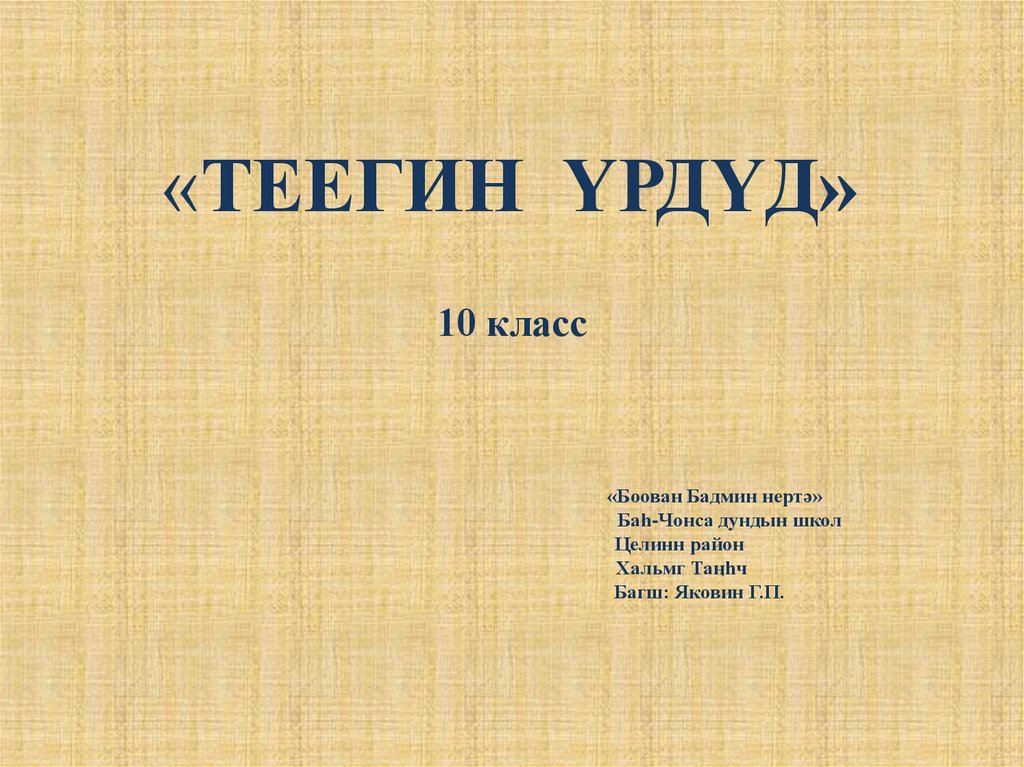 «Теегин үрдүд» 10 класс