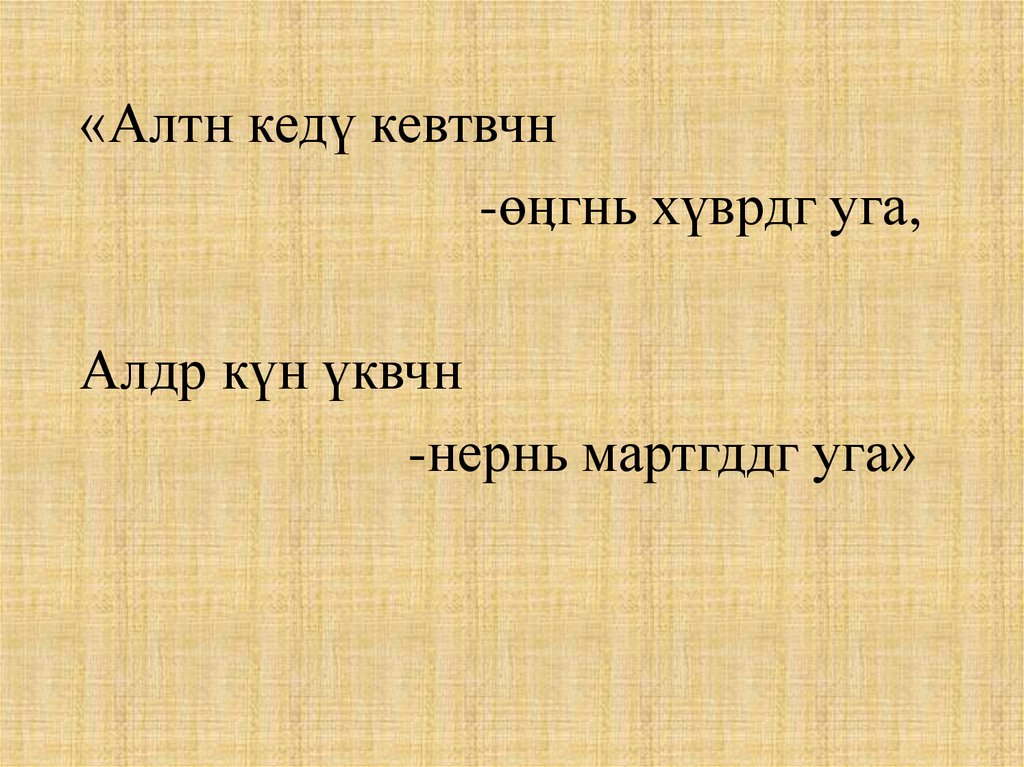«Алтн кедү кевтвчн-өӊгнь хүврдг уга,