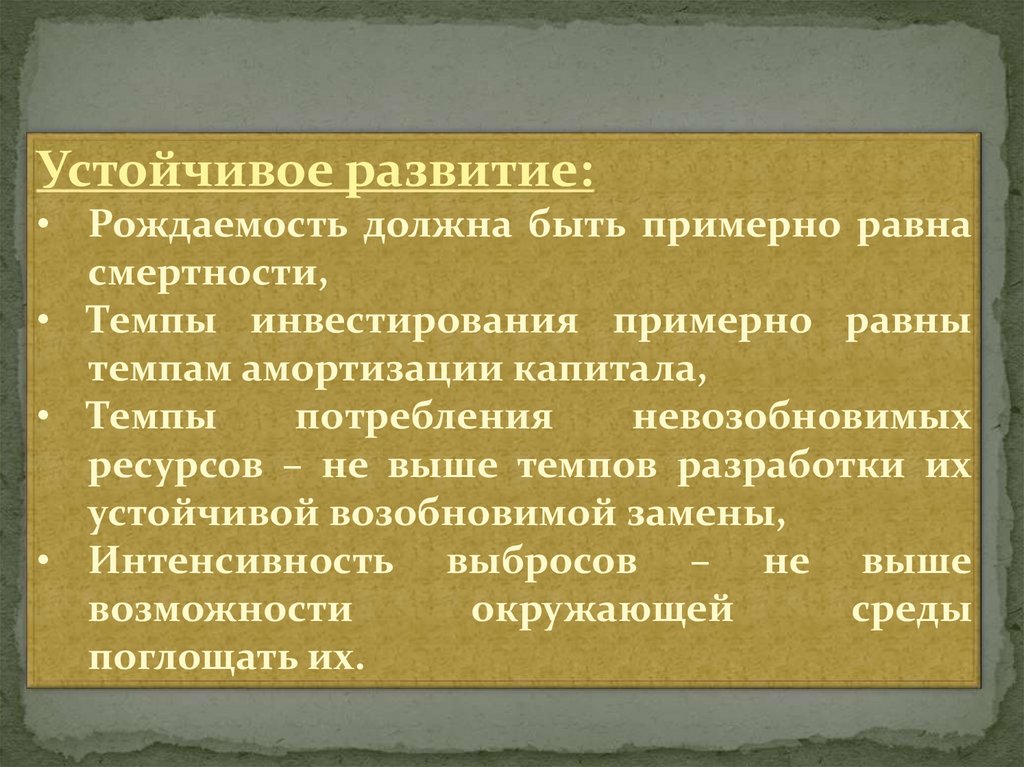 Устойчивое развитие:• Рождаемость должна быть примерно равна