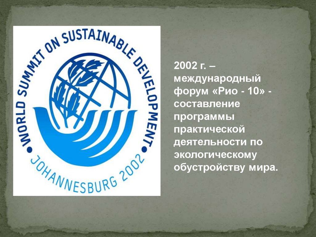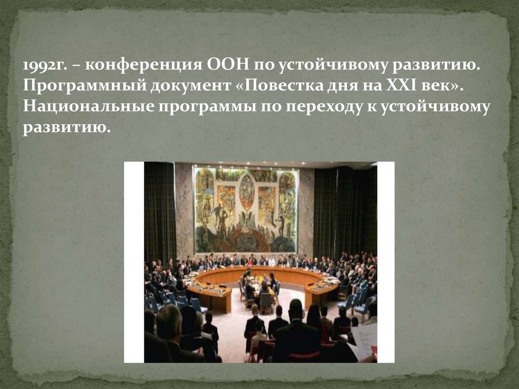 1992г. – конференция ООН по устойчивому развитию.Программный документ «Повестка дня на ХХI век».