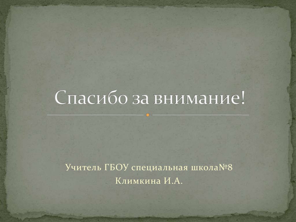 Учитель ГБОУ специальная школа№8Климкина И.А.
