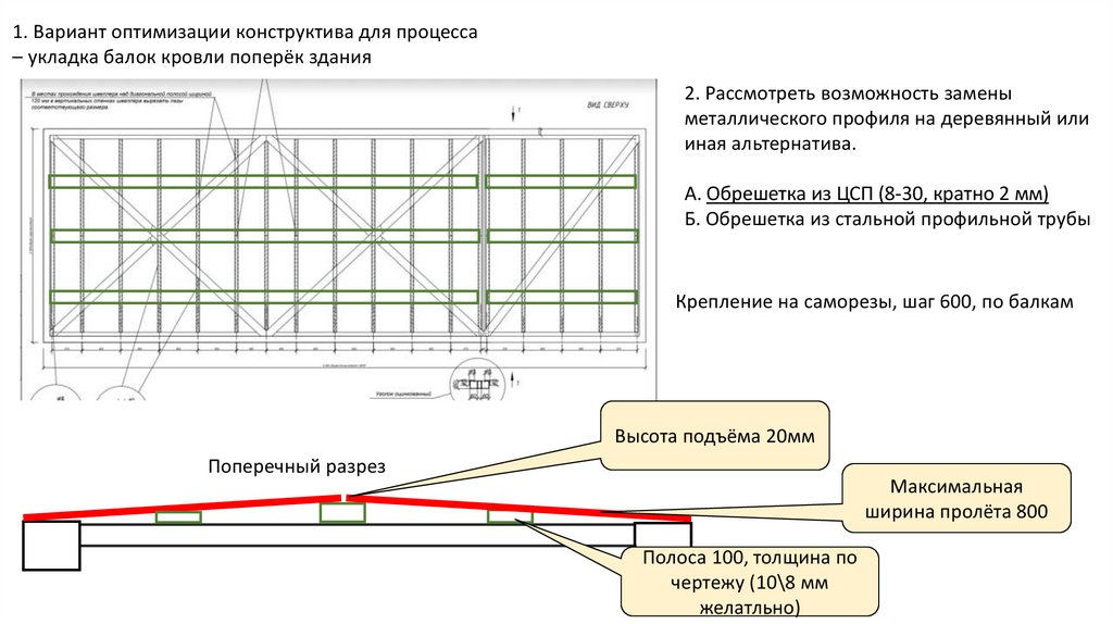 1. Вариант оптимизации конструктива для процесса– укладка балок кровли поперёк здания