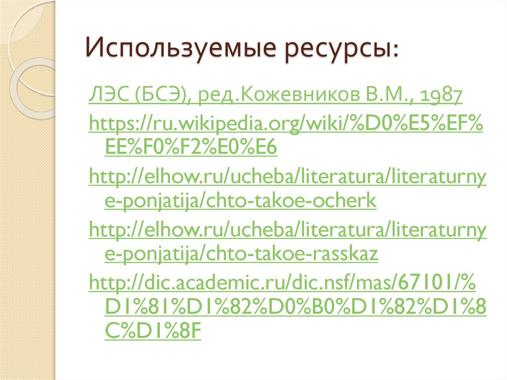 Используемые ресурсы:ЛЭС (БСЭ), ред.Кожевников В.М., 1987