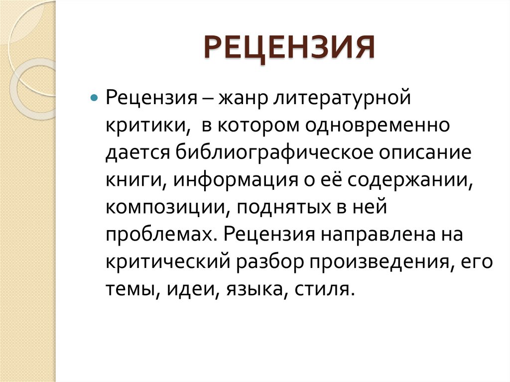 РЕЦЕНЗИЯРецензия – жанр литературной