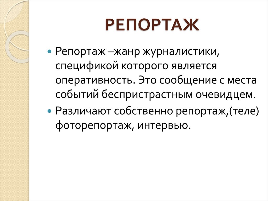 РЕПОРТАЖРепортаж –жанр журналистики,