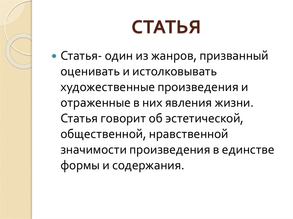 СТАТЬЯСтатья- один из жанров, призванный