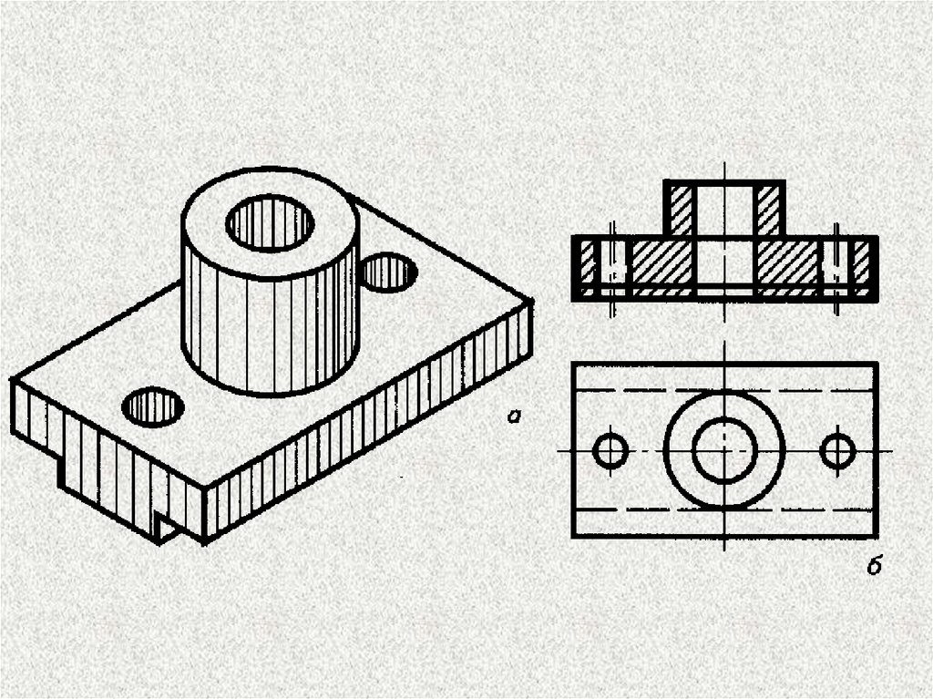 Соединение части вида и части разреза. Соединение половины вида и половины разреза