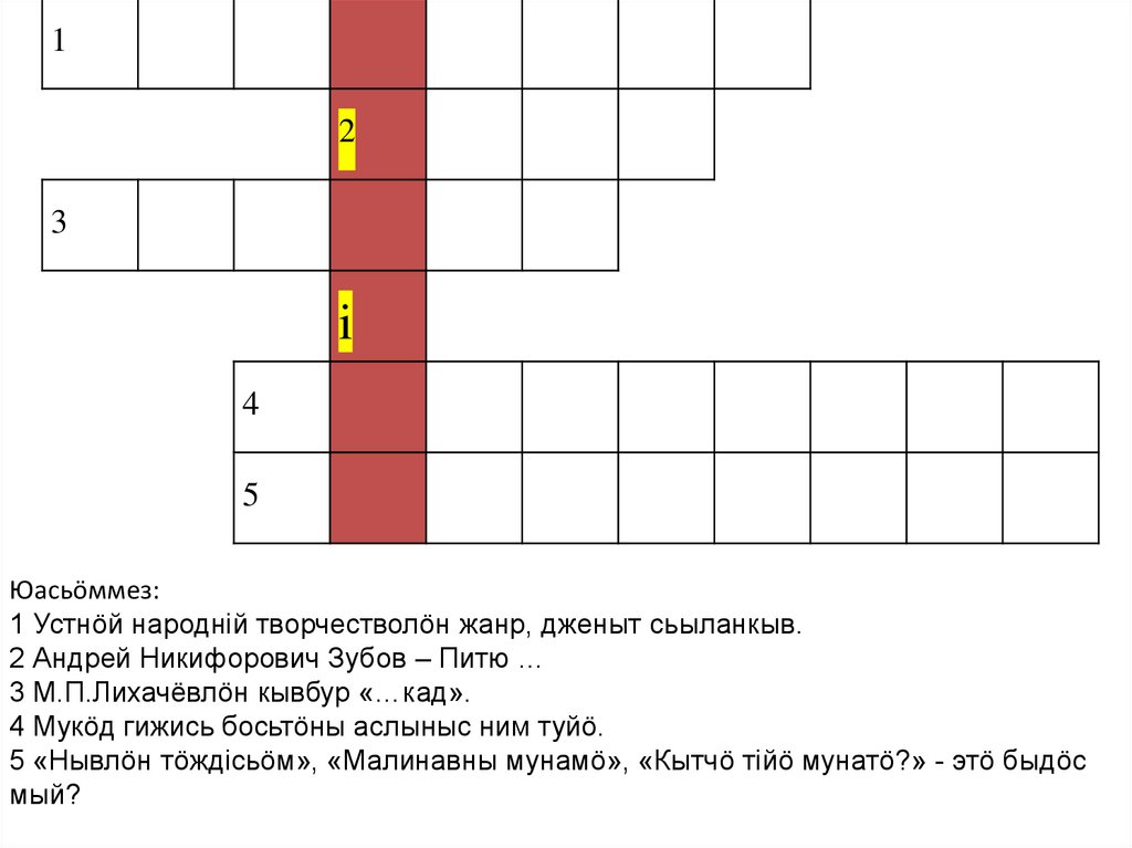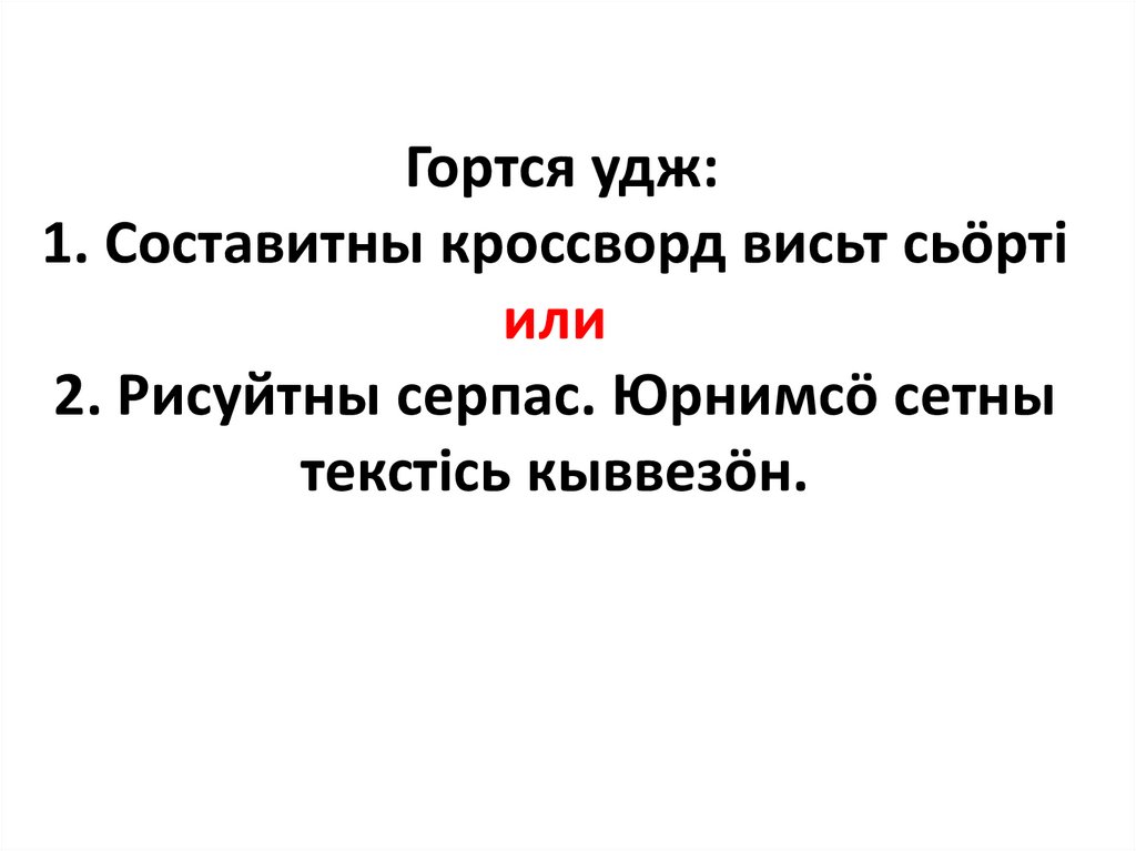 Гортся удж:1. Составитны кроссворд висьт сьöртi
