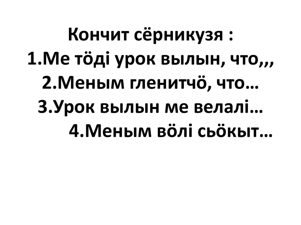 Кончит сёрникузя :1.Ме тöдi урок вылын, что,,,