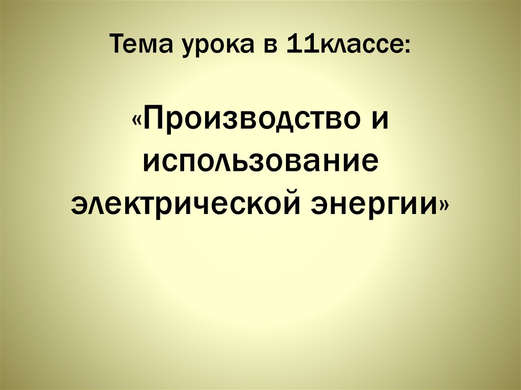 Производство и использование электрической энергии. Экологическое воспитание школьников. 11 класс