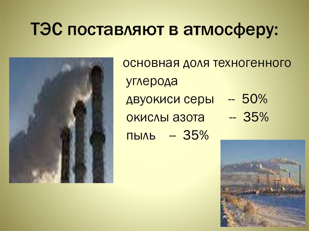 ТЭС поставляют в атмосферу:основная доля техногенного