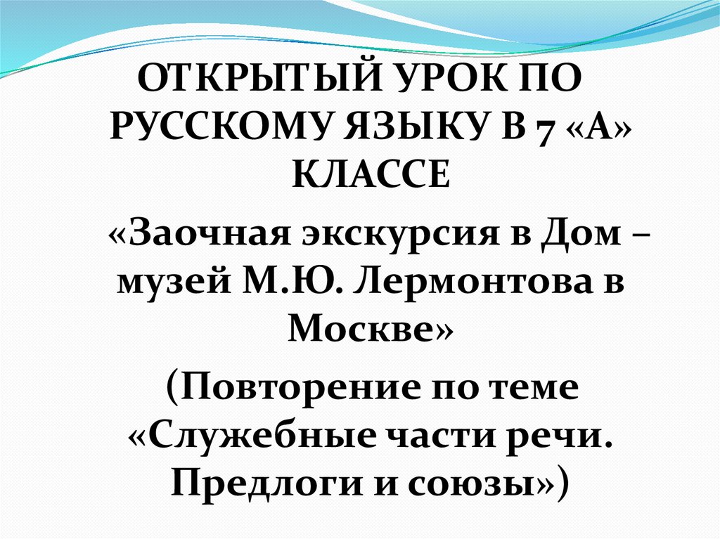 Открытый урок «Заочная экскурсия в Дом – музей М.Ю. Лермонтова в Москве». Служебные части речи