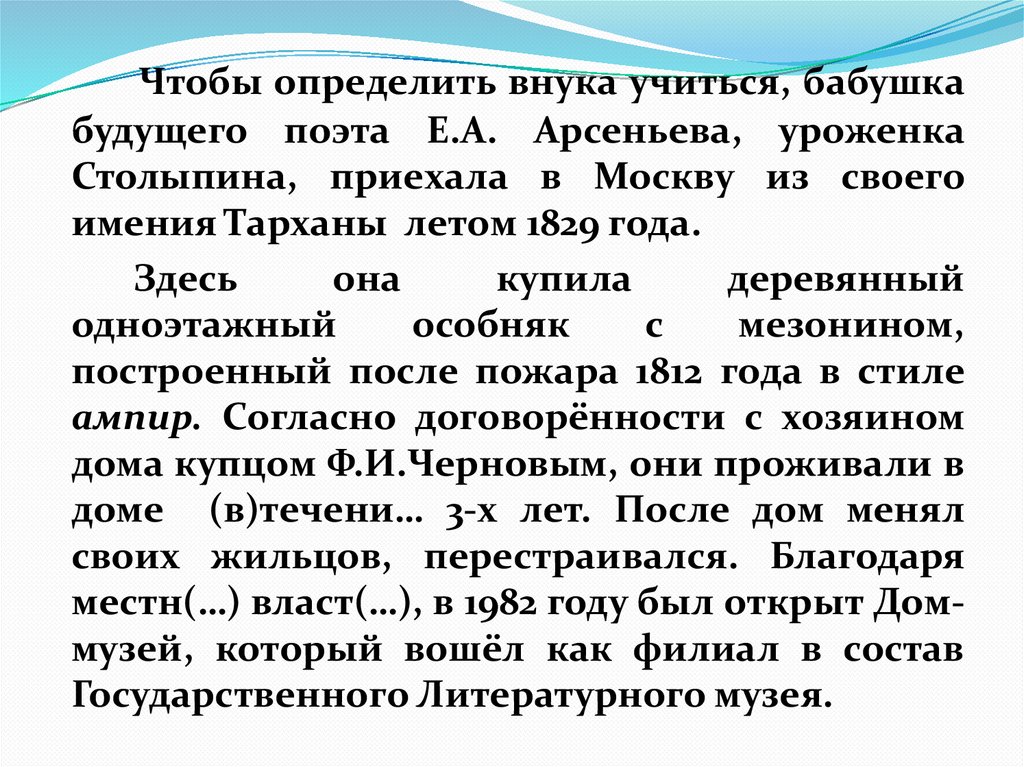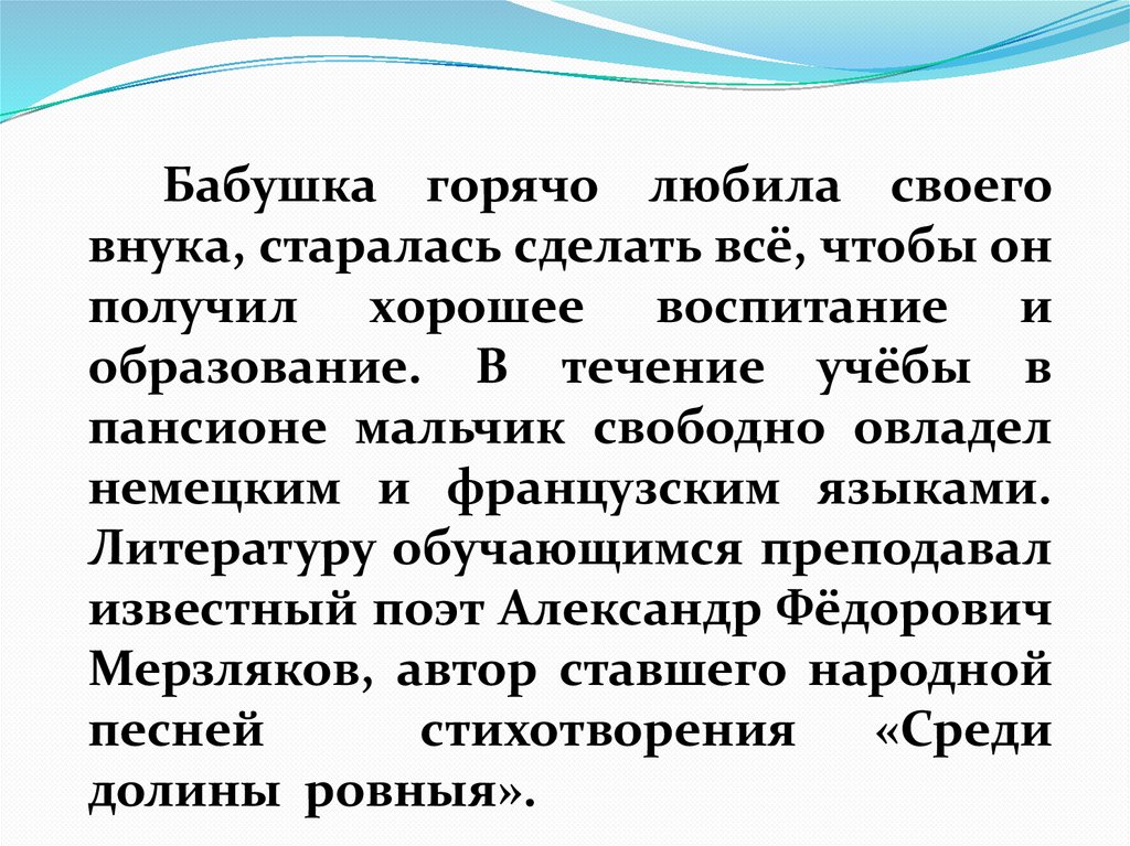 Чтобы определить внука учиться, бабушкабудущего поэта Е.А. Арсеньева, уроженка