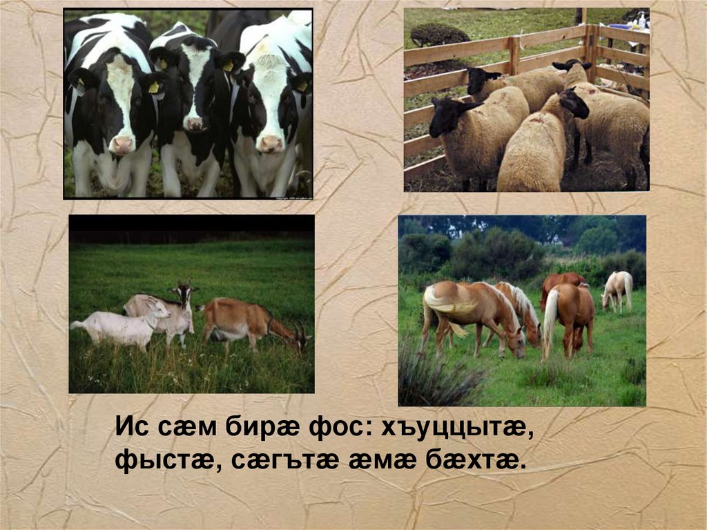Ис сæм бирæ фос: хъуццытæ,фыстæ, сæгътæ æмæ бæхтæ.