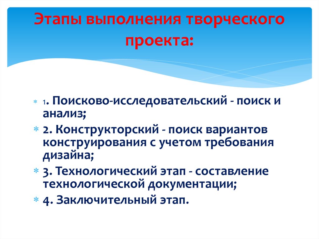 Этапы выполнения творческогопроекта: