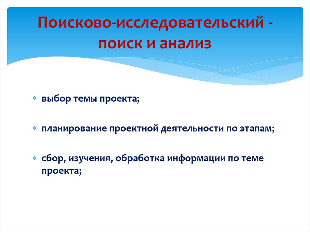 Поисково-исследовательский поиск и анализвыбор темы проекта;